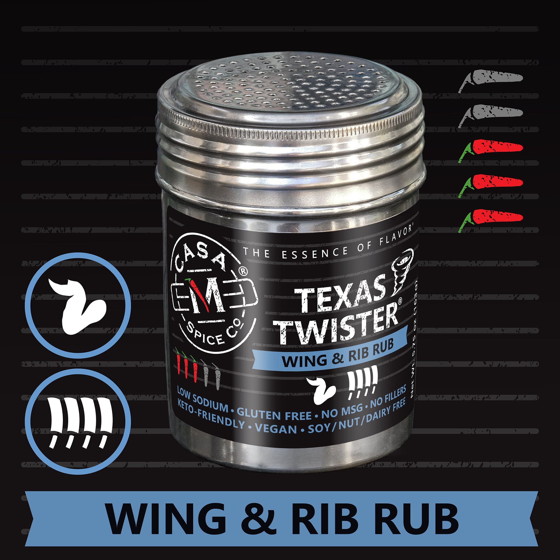 Designed as a wing and rib rub, Texas Twister™ has a bold, black pepper forward flavor on the tongue that opens up to an earthy warmth and finishes with a little chile heat on the tail. It’s guaranteed to take your wings and ribs to their pinnacle! Designed with smokers and grills in mind, but versatile enough for any cooking method, this seasoning is perfect whether you're frying, smoking, grilling, roasting, or baking.