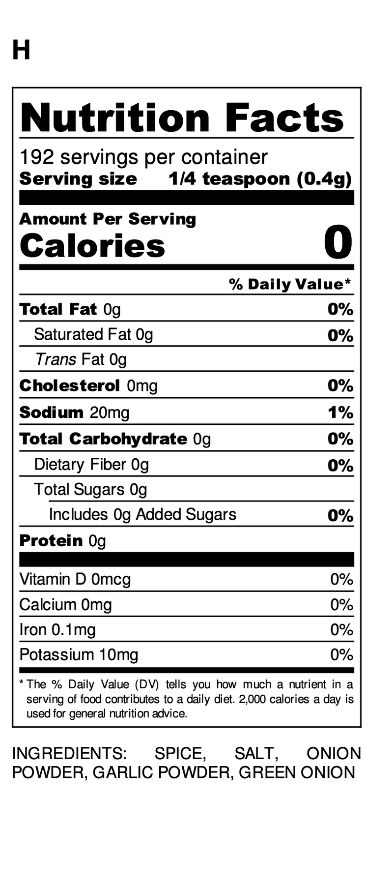Ingredients: spices, salt, shallots, garlic, paprika, capsicums, onion, & silicon dioxide (anti-caking agent)